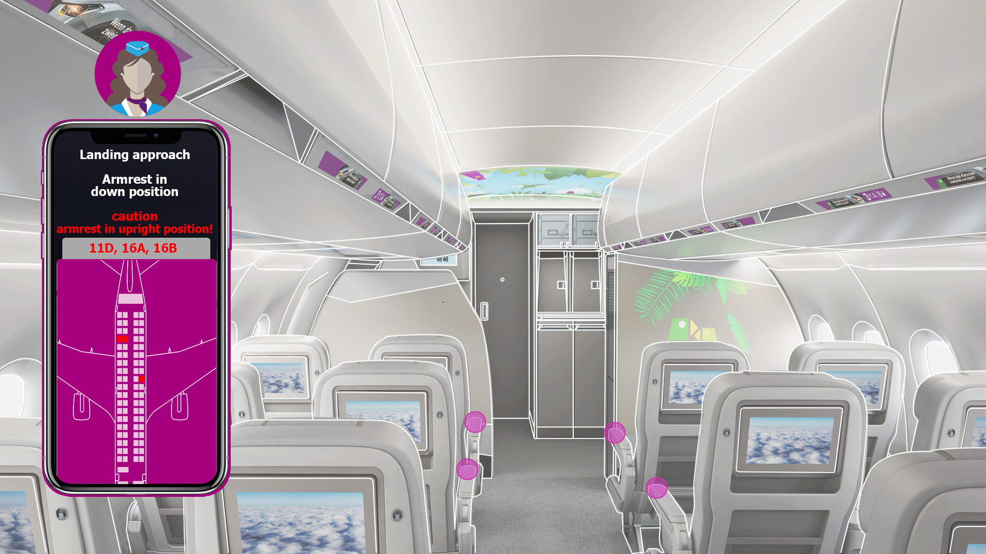 NON-VERBAL COMMUNICATION why not convey information to PAX effectively? Pacards are a perfect way to do so. Place them anywhere on the base cabin con-struction. A simple way to draw attention to hygiene, rules & safety measures from various places in the cabin.